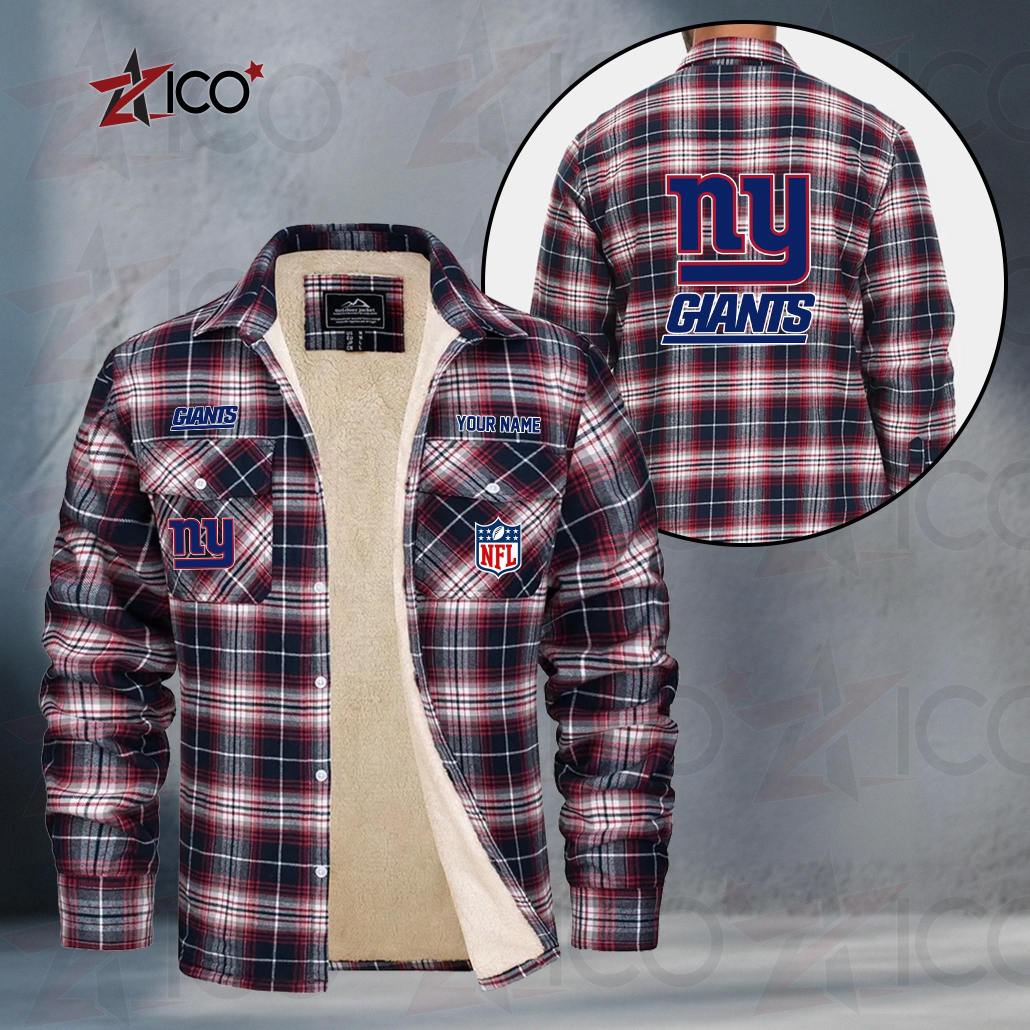 New York Giants Fleece Flannel Plaid Jacket TG56