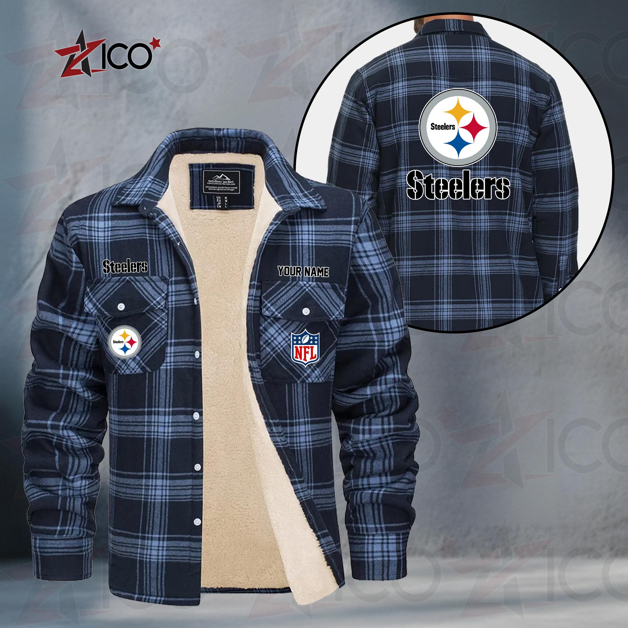Pittsburgh Steelers Fleece Flannel Plaid Jacket TG59